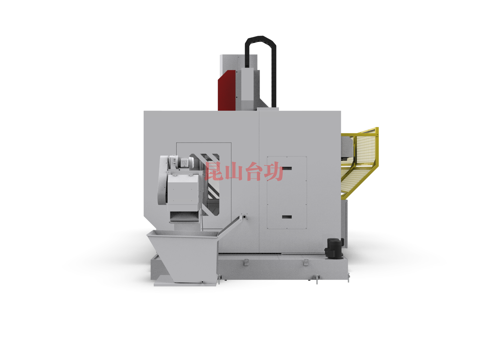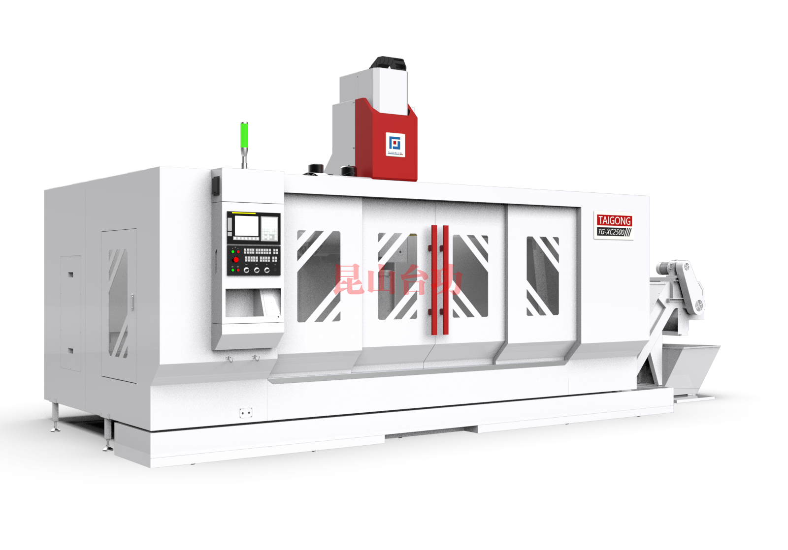 ● 機型采用前高後低有交降低主軸箱前傾,床身結構有效防護水屑飛濺到設備外部,同(tóng)時有效保護導軌;